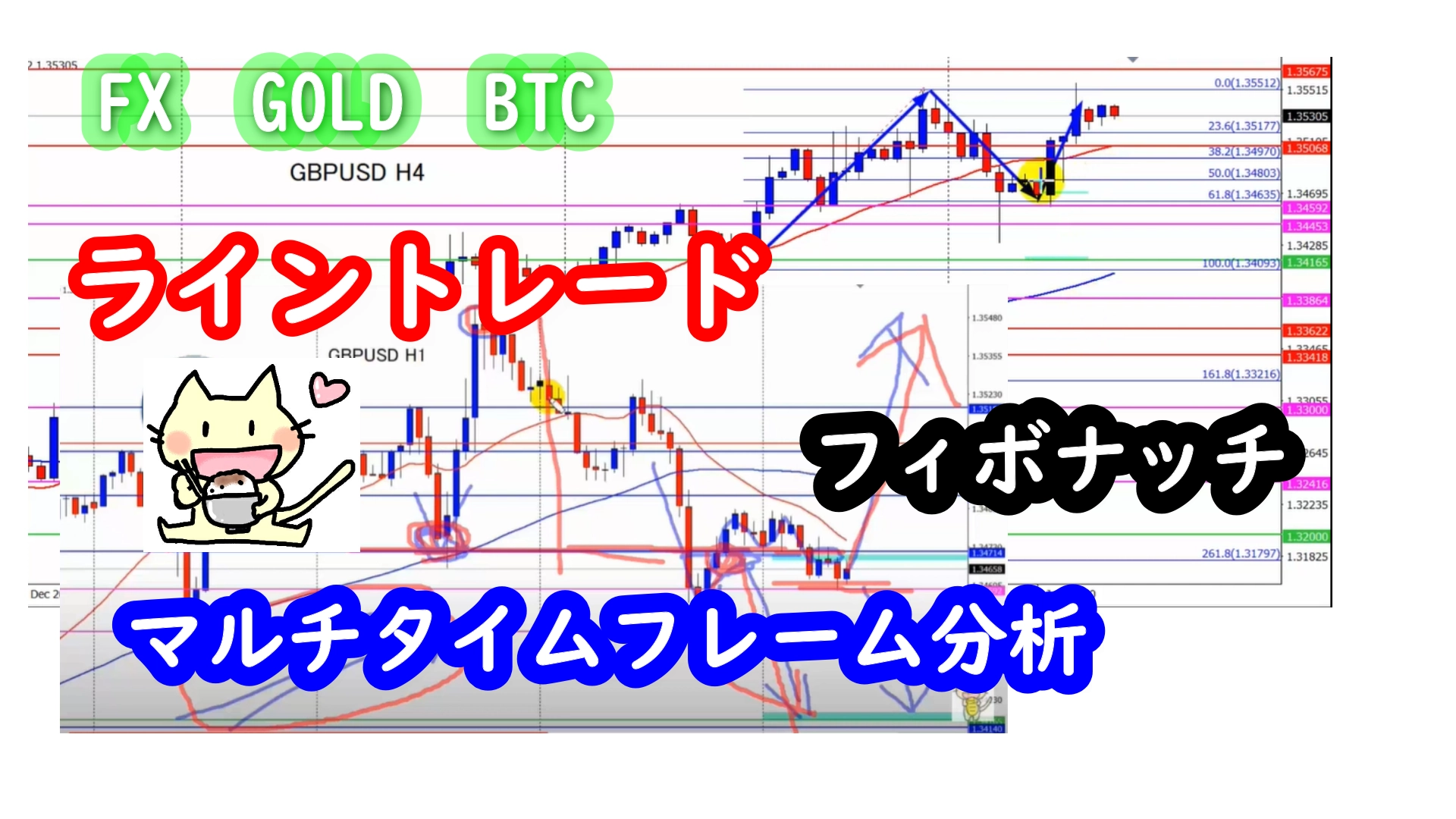 【FX】昨日のシナリオは不発でした。ライントレード、フィボナッチ、マルチタイムフレーム分析