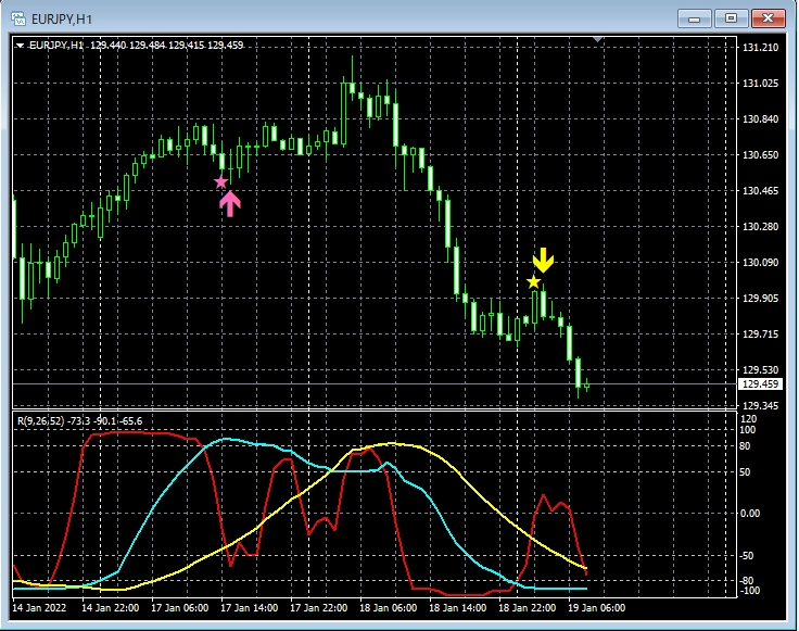 RCI, MA, GMMAなどとの組み合わせで威力を発揮するインジケーター 1月10日~1月14日に見られたサインの例