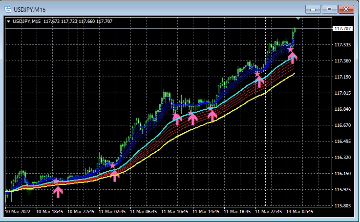 下記では、3月14日~3月18日において、mBDSR(RCI2本フィルターバージョン)のサインが上手く機能したと思われる例のうちの一部をピックアップして紹介します。