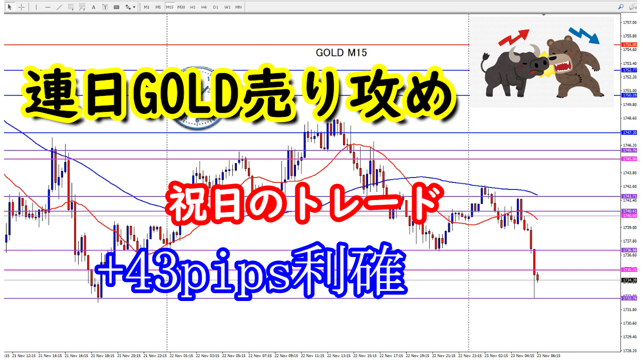 祝日のトレード、GOLDトレード解説 2022.11.23(日)