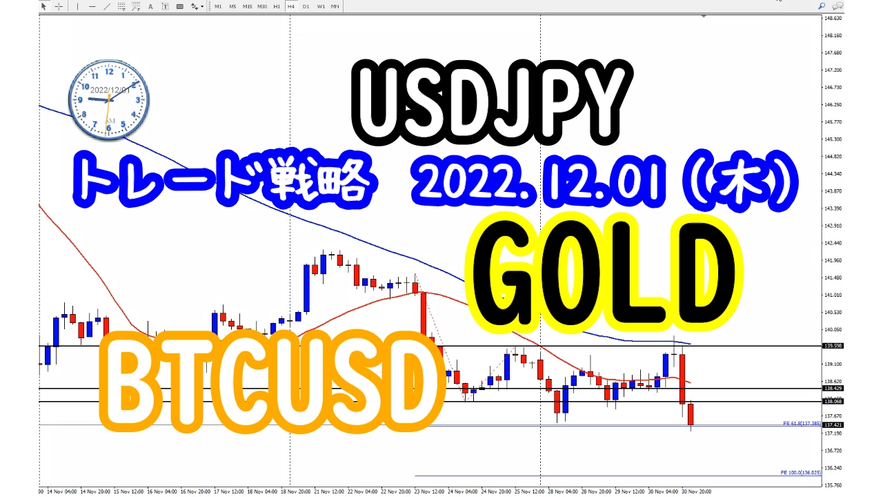 本日のトレード戦略 2022.12.01(木)USDJPY、GOLD、BTCUSD