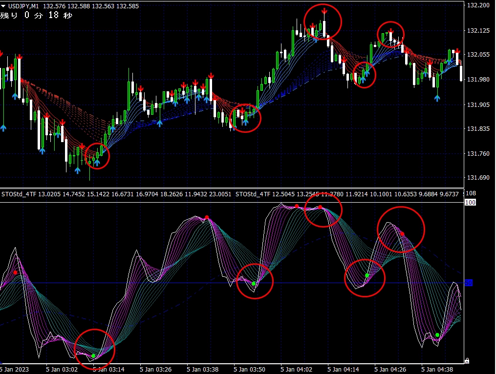 ※ 1分足用インジケーターとして説明しておりますが、当インジケーターは