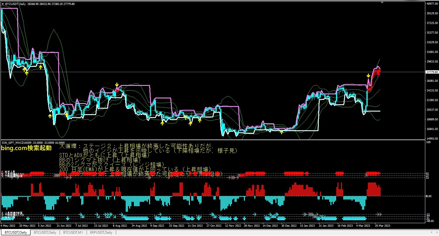 標準偏差レンジとADXがともに上昇している場合、下降相場であることが多いようです。