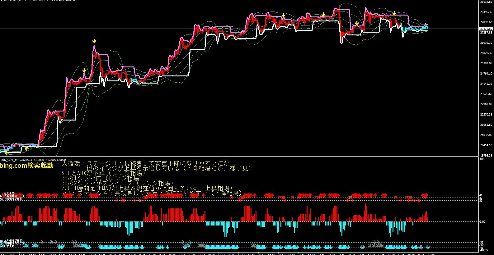- 標準偏差レンジが上昇していることは、下降相場の傾向を示しています。