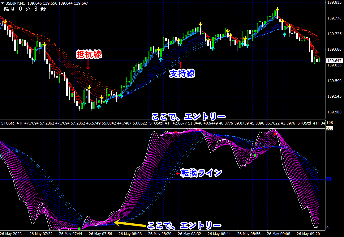 ★ 上抜け・下抜けの転換ラインで確実なエントリー!(画像クリックで拡大)