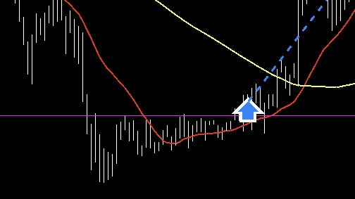 ちょうどオレンジライン付近が、1hのmaも重なっており、ここで支えられなければ戻り売り強まるかという場面