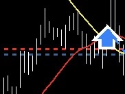 15分足、安値切り上げ直しから、上側白ラインの攻防上抜け