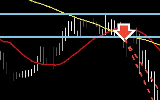 4時間足、下側白ライン2本の節目を上抜け後の押し目買いが入ってくるかの目線。下げ止まってくれば買っていきたいところ。