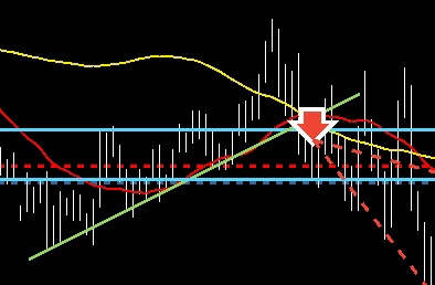 1時間足、白帯の揃えてきていた節目を下抜けから、