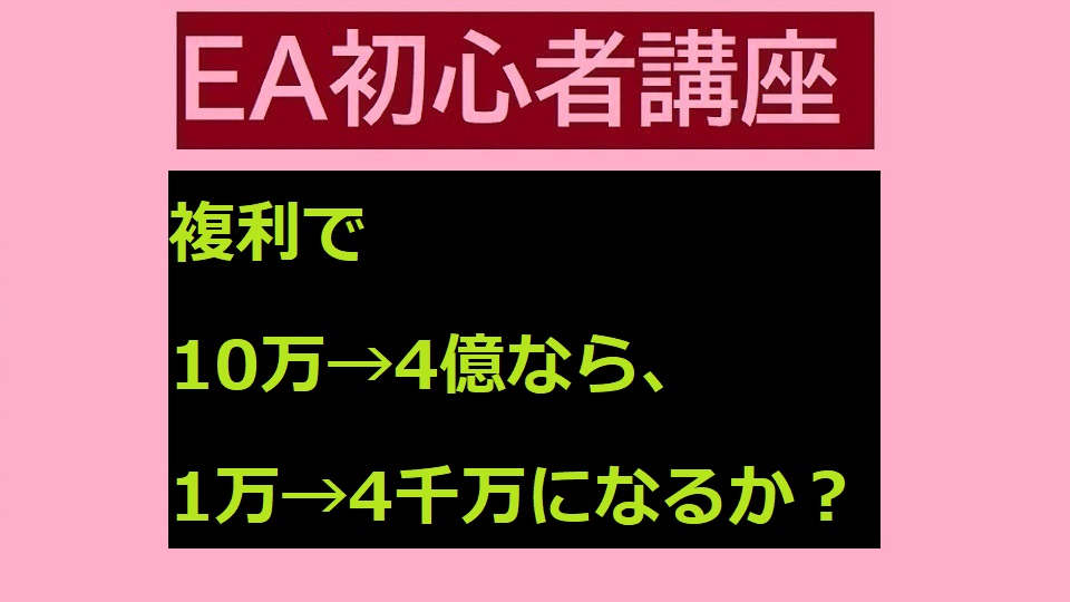 本日は「複利で10万→4億なら、1万→4千万になるか?」