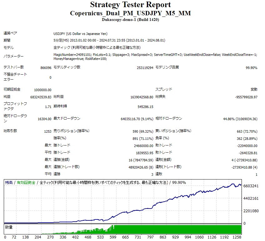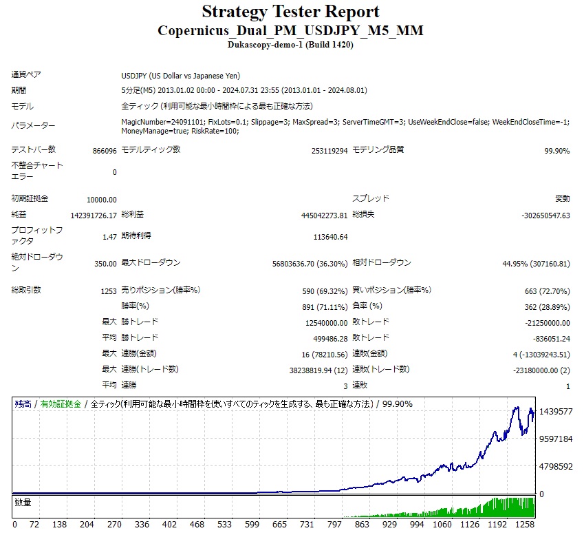 ちなみに100万(1.0ロット)スタートの結果です。