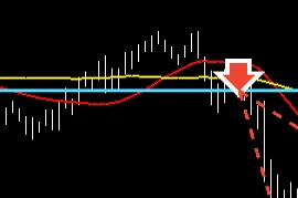 1時間足、すでに下げた後ですが、ma攻防で押さえられるなら下落継続とも考えられるので、