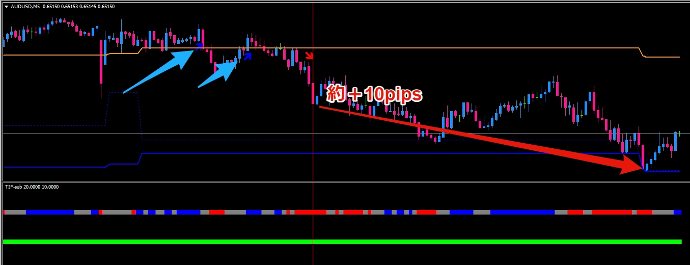 監視時間足は5分足ですが、エントリー前や利確近くなってくると