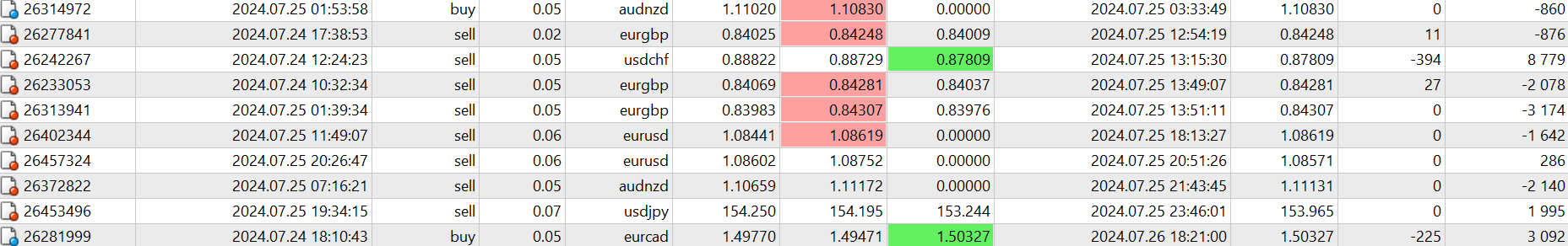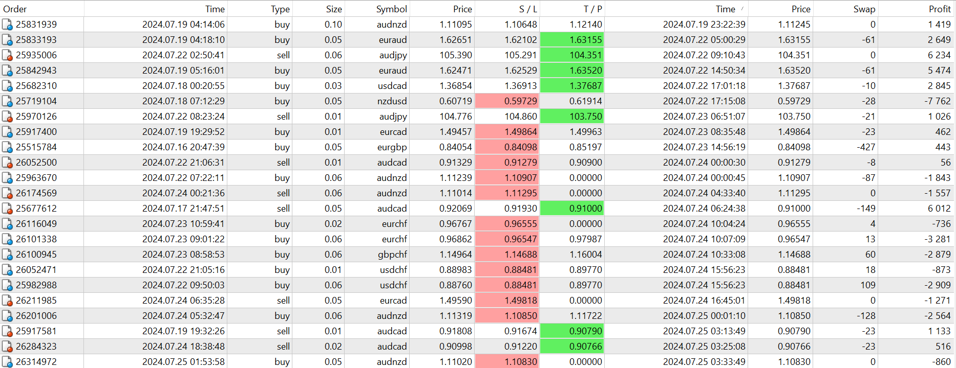何回かポジションを持った通貨ペアーで50pipsくらいの所から増し玉として、0.01ロットでも入っているのでそれらも100pipsに届いたものもあれば、最初のポジションのものと同位で決済したのもあるでしょう。(履歴を見てみないと実際何をセットしたか自分でもわかっていません。)
