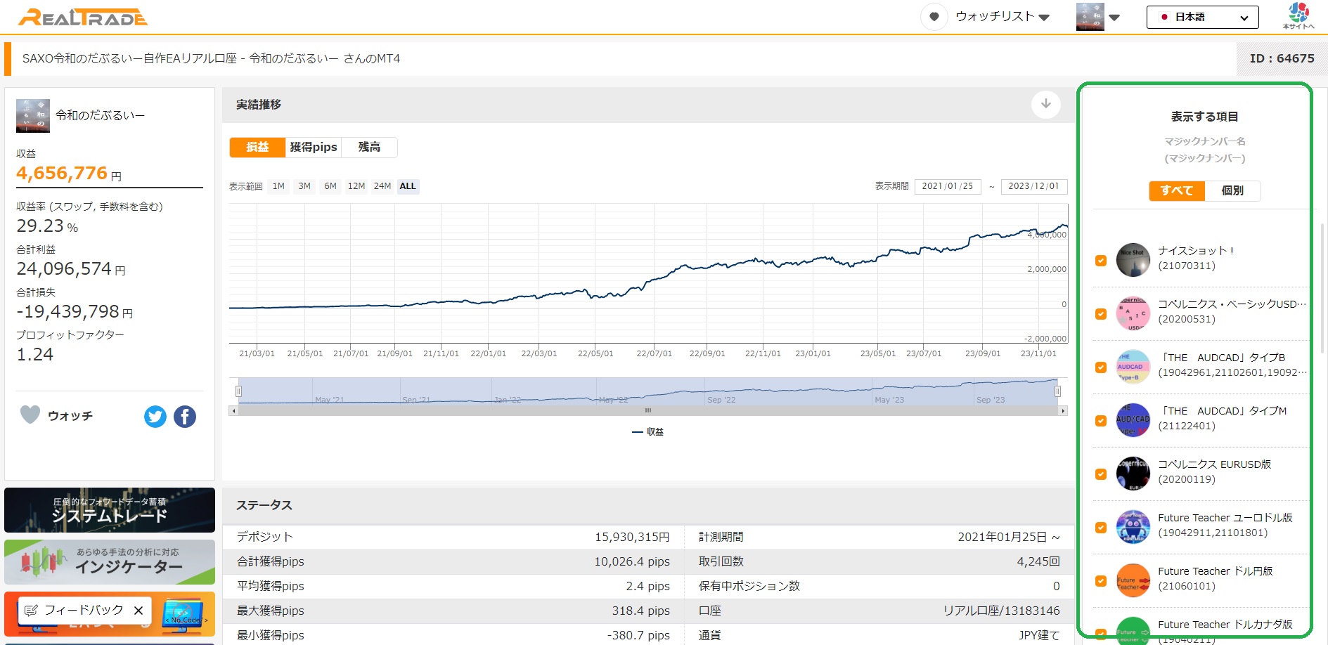 リアル運用のフォワード成績では同じ結果にならない場合があります。