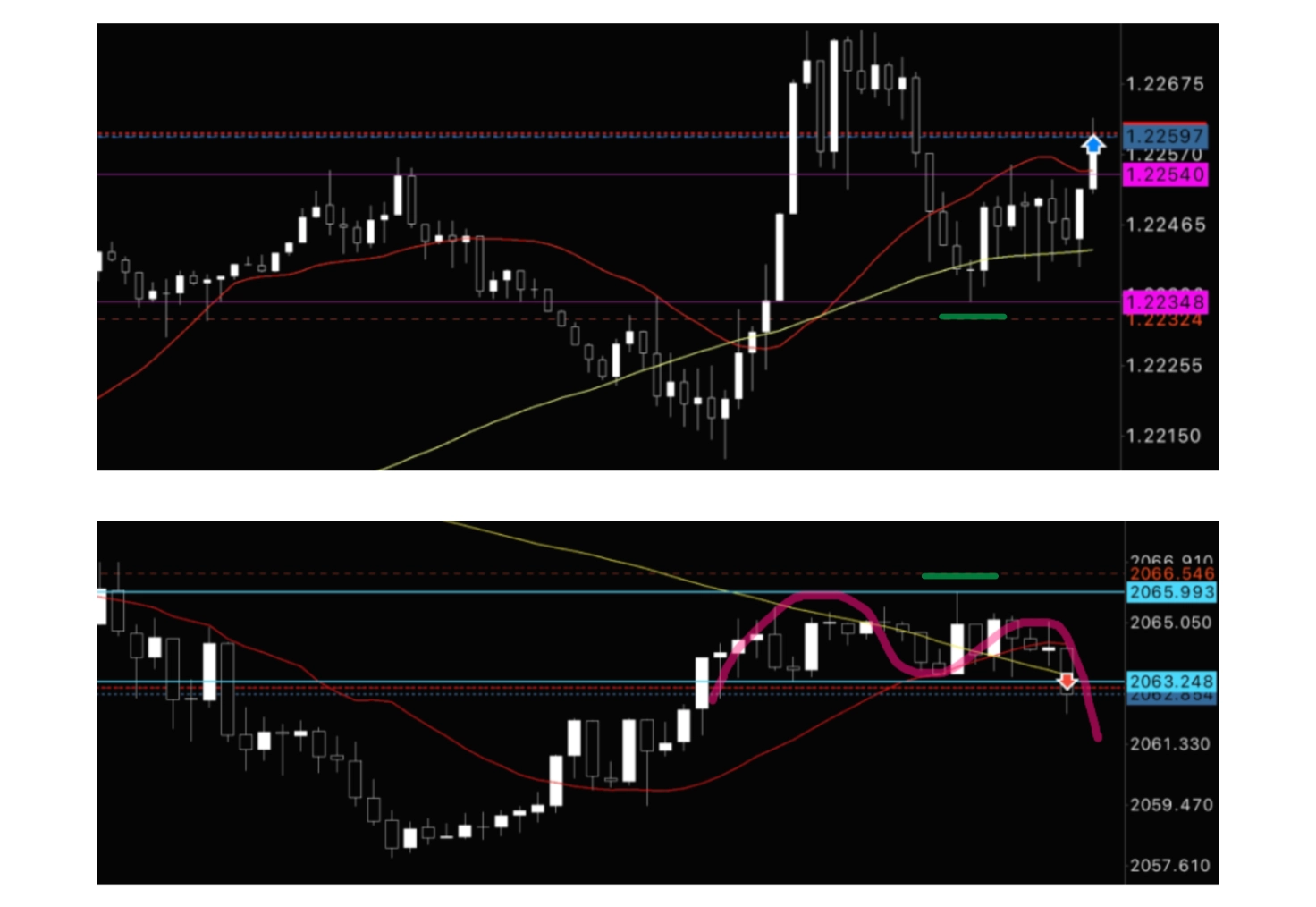 日々のトレード履歴と根拠 (環境認識からエントリー決済まで) を実際の履歴が載った取引チャートを用いて公開しています。当然損切りや微益撤退なども公開しています。 トレードパターンは決まっているので、一度深く理解できれば再現性のある「デイトレード(数時間) 〜 中期トレード(数日保有) 」になります。 ー 環境認識や方向感に慣れてきたら、あとは実際にどこでエントリーしてどこで決済 (利確 & 損切り) するか、具体的な立ち回りの方が遥かに重要になってきます。 トレードに正解はありませんが、自分のトレードと比べて答え合わせのようなイメージで、次回以降は同じ波に関われるようにと意識もして、日々のトレード振り返りの機会にしていただければと思います。 ー 終わったトレードに関して振り返って学んでいただくためのもので、投資助言は一切行っておらず投資に関する損失はすべて自己責任になります。ご自身のトレードスキル向上やテクニカル分析の研究材料の一つとしてご活用ください。