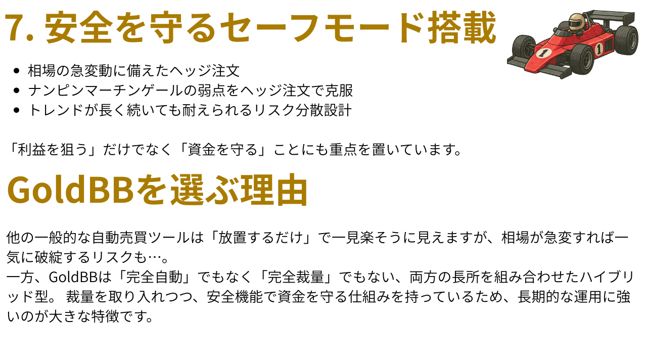 ナンピンマーチンゲール危機一髪!GoldBBのセーフティ機能は、ナンピンマーチンの弱点を克服する