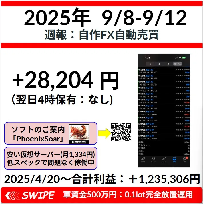 【週報:2025.9.8-2025.9.12】オリジナルEA「PhoenixSoar」の成績報告
