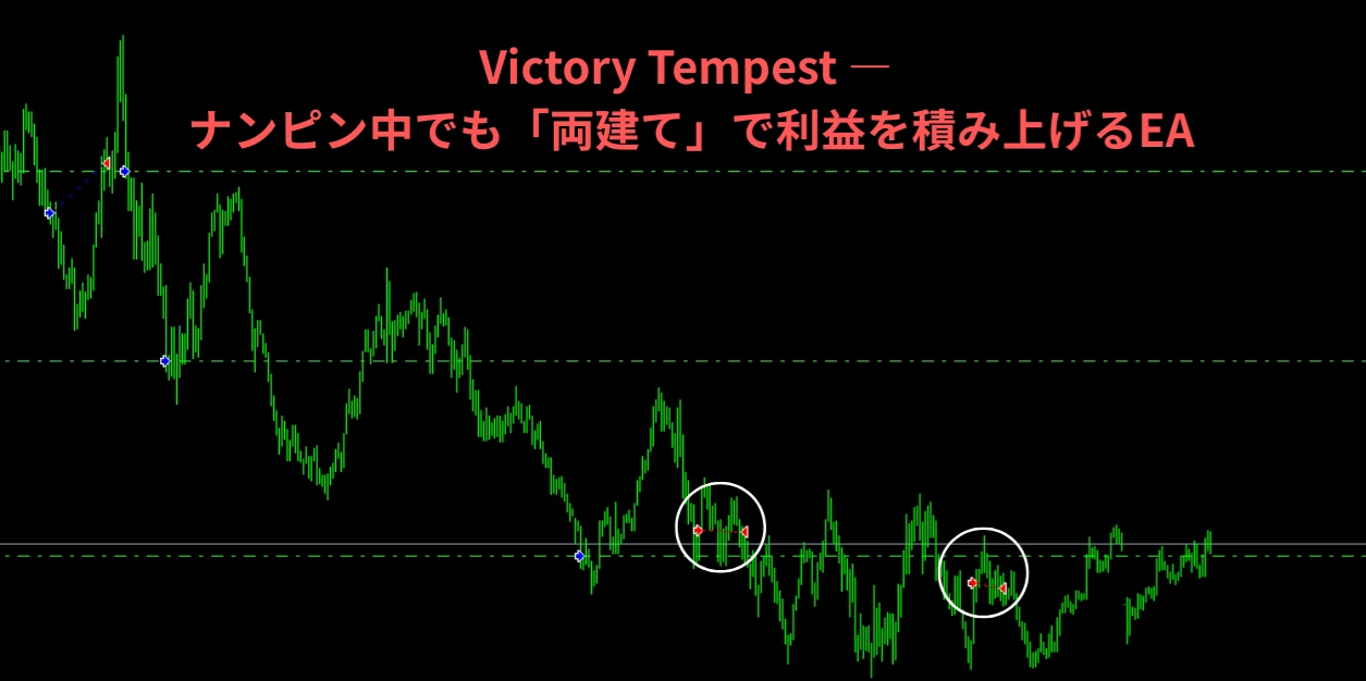 Victory Tempest の魅力は、両建てとナンピンを柔軟に組み合わせている点です。