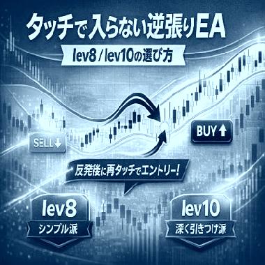 エンベロープ逆張りは魅力的ですが、負けやすいパターンもハッキリしています。代表例が「ラインに触れた瞬間の飛び乗り」と「トレンド中の連続エントリー」です。daedalus-k シリーズ(lev8 / lev10)は、この“逆張りの負け筋”を避けるために、「タッチした瞬間には入らない」設計を採用していま...