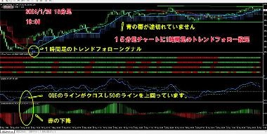 15分足に1時間足のトレンドライン(シグナル)を表示させた場合