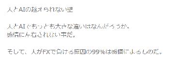 99%の人間はFXで勝つことができない!?AI搭載の自動売買ソフトEAや半裁量EAを選択するのには人間の壁という絶対に越えねばならない壁があった。