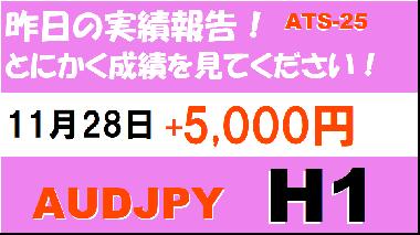 【前日の結果】AUDJPY H1 / M5 『ATS-25』11月28日