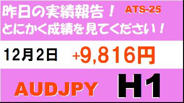 【前日の結果】AUDJPY H1 / M5 『ATS-25』12月2日