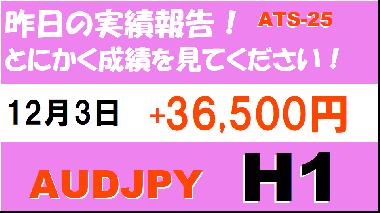 【前日の結果】AUDJPY H1 / M5 『ATS-25』12月3日