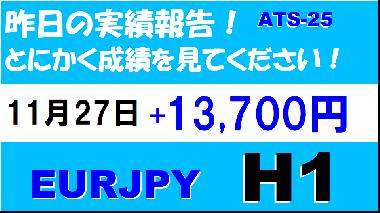 【前日の結果】EURJPY H1 / M5 『ATS-25』11月27日