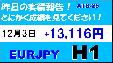 【前日の結果】EURJPY H1 / M5 『ATS-25』12月3日