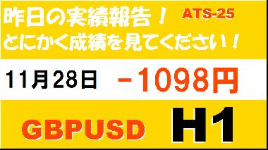 【前日の結果】GBPJPY H1 / M5 『ATS-25』11月28日