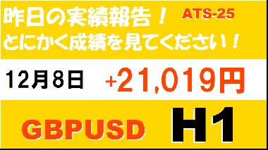 【前日の結果】GBPJPY H1 / M5 『ATS-25』12月8日