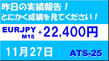 【EURJPY M15】前日の結果『ATS-25』 11月27日
