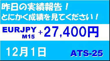 【EURJPY M15】前日の結果『ATS-25』 12月1日