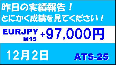 【EURJPY M15】前日の結果『ATS-25』 12月2日