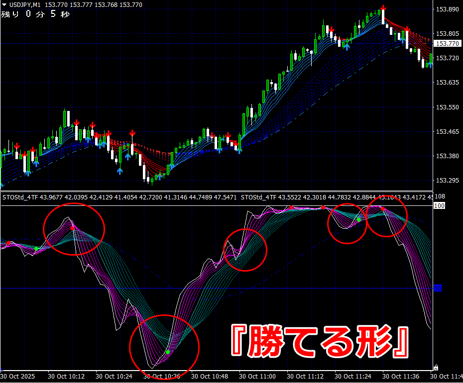【10月30日|GOLD 1分足】 スキャルピング風林火山 先ほどサインが出現したと報告させていただきました。 もう60pips取れています!! 新たなツールはスキャルピング、デイトレ、スイング全てに対応できそうです。 以上です。 ですが、今レンジ気味なので少し気を付けて下さい。上...