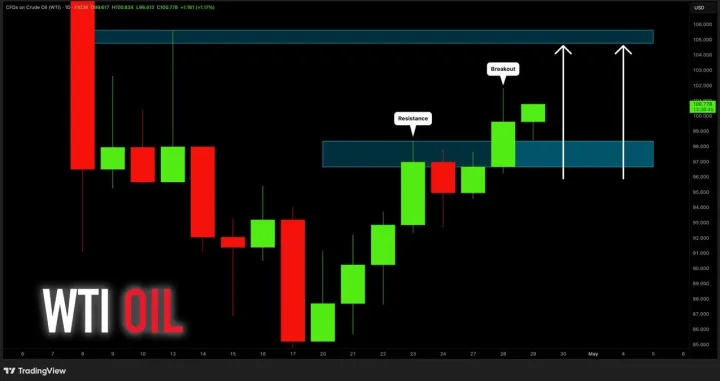 原油 (#WTI): 重要なブレイクアウトの可能性? 日足の水平抵抗ラインの確定した違反を確認しました WTI原油で。 極めて高い確率で強気の継続を示しています。 価格が104.5へ上昇することを予想 ————————— 日足時間足 二つの強力な取引ツール。一本の真の優位性。 エントリー...