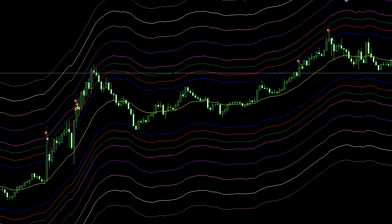 8本のラインにより、価格の行き過ぎ具合を段階的に判断します。 無理な逆張りを避け、十分に引きつけた場面のみを狙います。