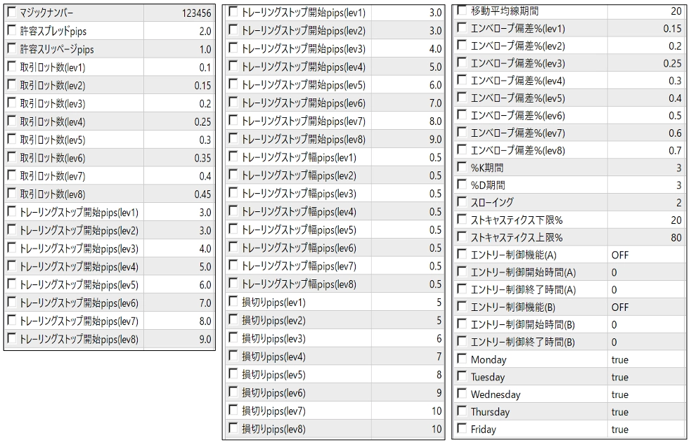通貨や時間足に合わせてパラメータ調整が可能です。