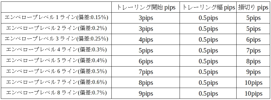 ・トレーリング幅は 0.5pips のため、ストップレベルが設定されている口座では正常に動作しません。