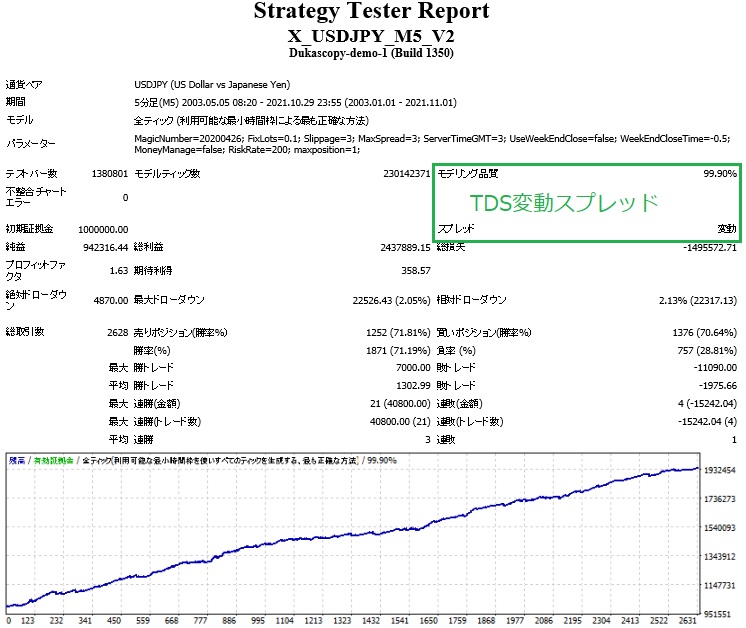 【パラメーターについて】 基本的にはロットのみ調整して頂くカンタン設定です。 ●単利運用時のロット:パラメーター「複利運用」=falseの時の単利運用時のロットです。1.0ロット=10万通貨です。 ●リスク割合:リスク割合は以下の通りです。 100=証拠金10万円につき0.1ロット(1万通貨) 50=証拠金10万円につき0.05ロット(0.5万通貨) 20=証拠金10万円につき0.02ロット(0.2万通貨) 10=証拠金10万円につき0.01ロット(0.1万通貨)