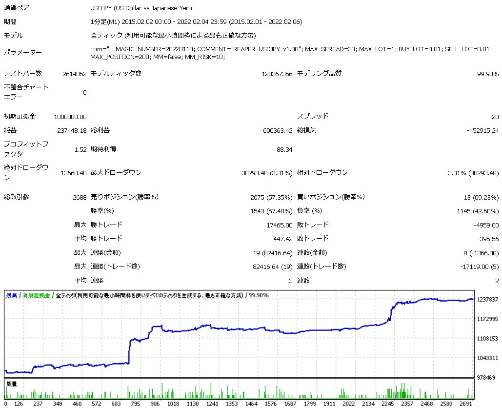 「REAPER_USDJPY」はUSDJPY専用のEAです。
