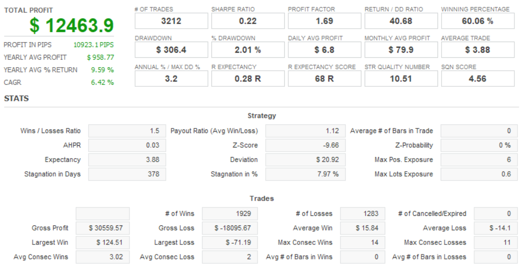 ・Risk-Return Ratio: Total Profit and Loss during the period ÷ Maximum Drawdown