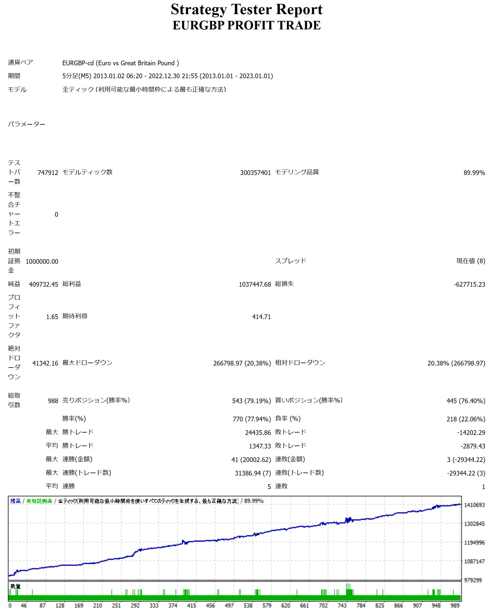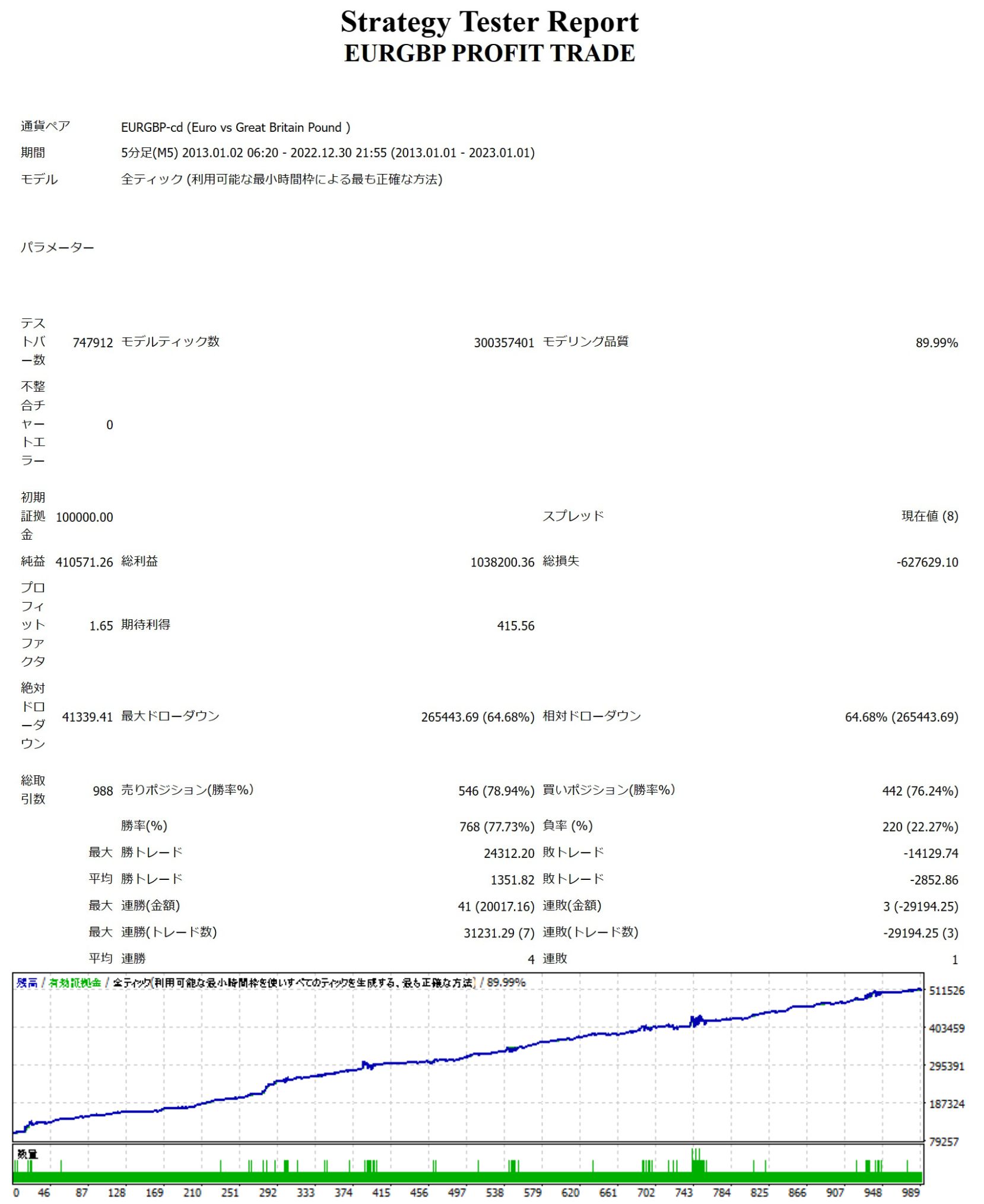 ※当EAはEUR/GBPの1分足専用EAとなります。他の通貨ペアや他の時間足でのご利用も可能ですが、EUR/GBPの1分足に特化したパラメータとなっていますので、ご利用の場合は自己責任でお願いいたします。