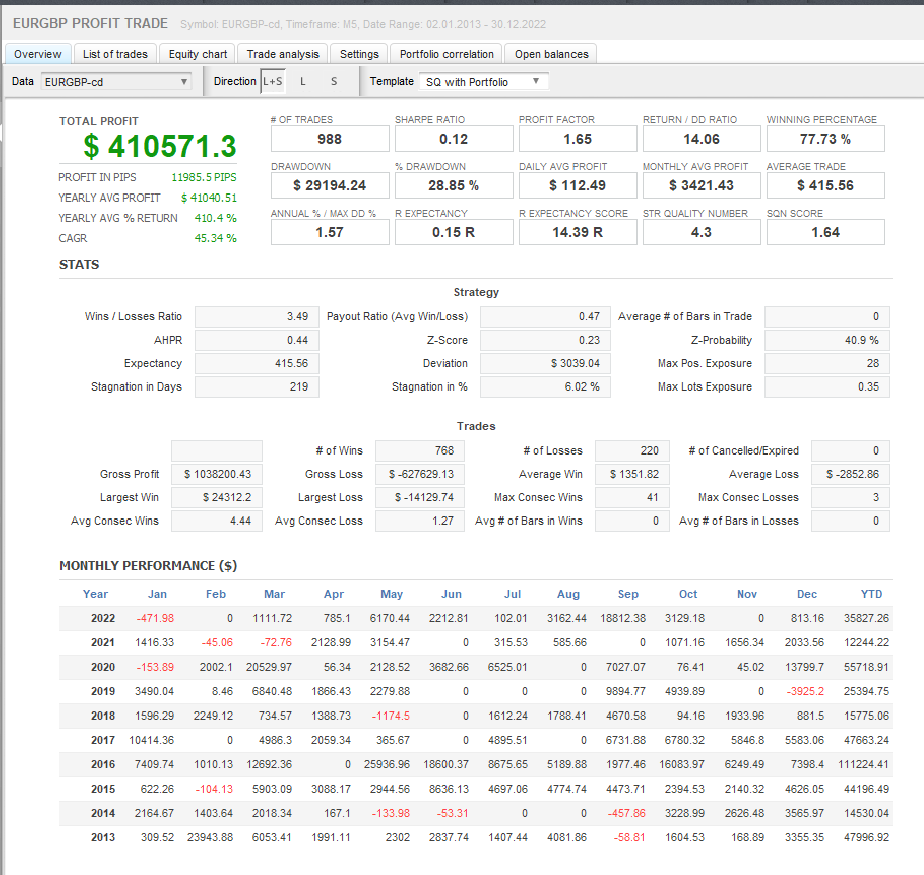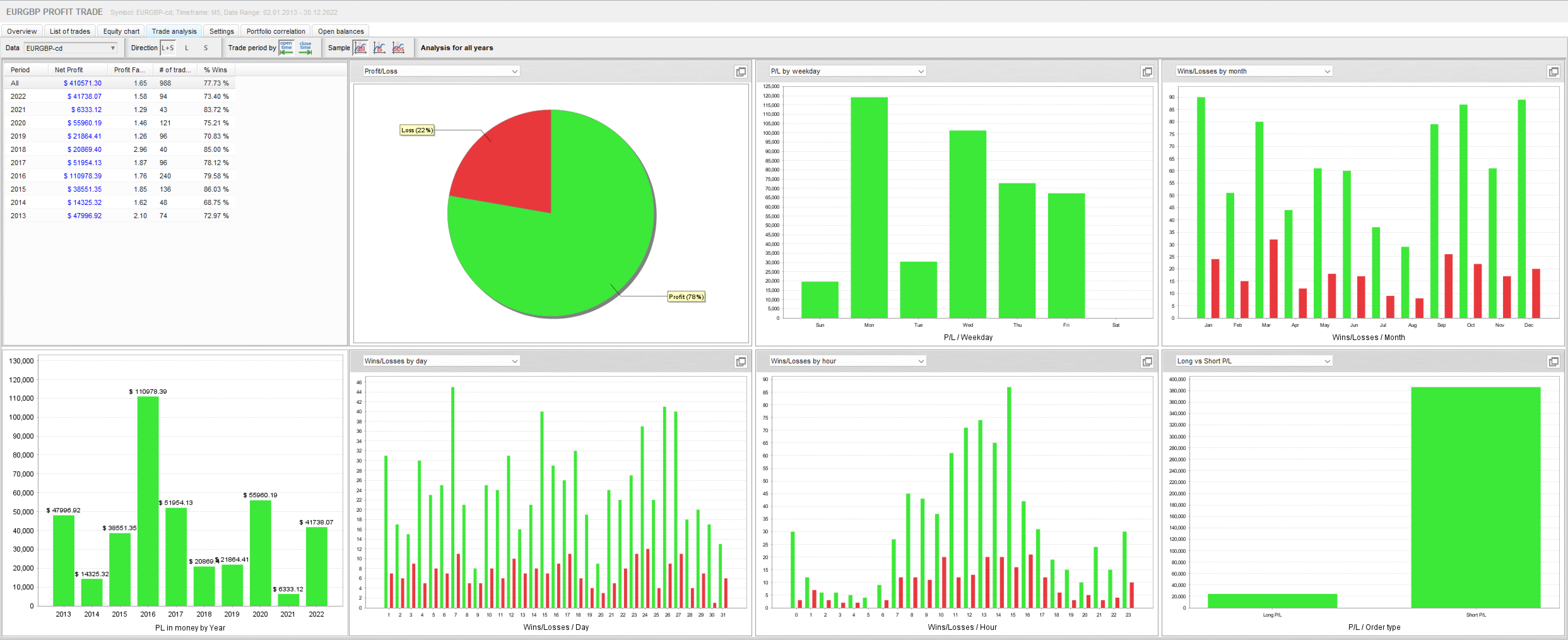 ขึ้นอยู่กับประเภทการซื้อขายของ EA มีช่วงเวลาที่เหมาะสมกับการซื้อขายตามแนวโน้มมากกว่าและช่วงเวลาที่เหมาะกับการซื้อขายที่ขัดแย้งกันมากกว่า ทำให้ผลลัพธ์ที่สม่ำเสมอในทุกช่วงเวลาไม่น่าเป็นไปได้ แม้ว่าปีที่แล้วอาจมีผลลัพธ์ที่ดี แต่ผลการดำเนินงานในปีนี้อาจไม่มีแนวโน้มที่ดีนัก ซึ่งจำเป็นต้องใช้ดุลยพินิจในระดับหนึ่งในการพิจารณาว่าเป็นเวลาที่เหมาะสมในการดำเนินการหรือไม่
