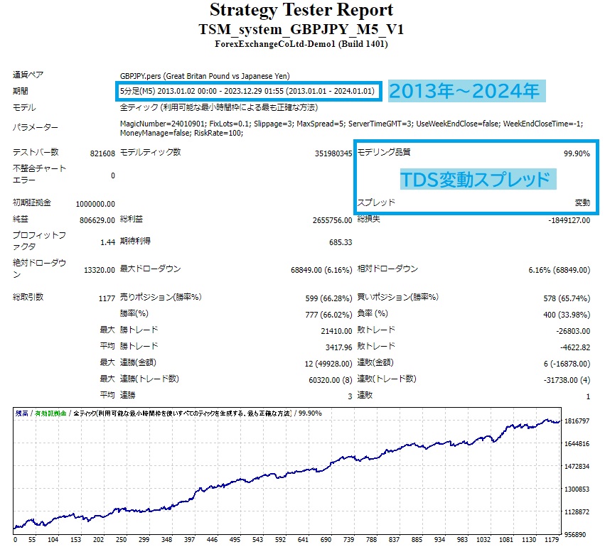 ●信頼性の高いと謳われるTDS変動スプレッドによる検証結果。 (2.0pips~10pips変動・スプレッドフィルター3pips)