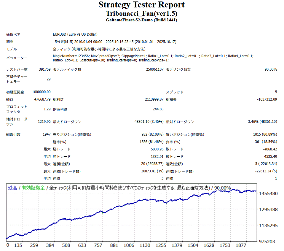 裁量トレードで負けが続き、ロットを大きくしてみたり、逆に少ない利益ですぐに利確してしまうといった、人間にありがちなルールの自己都合化がありません。