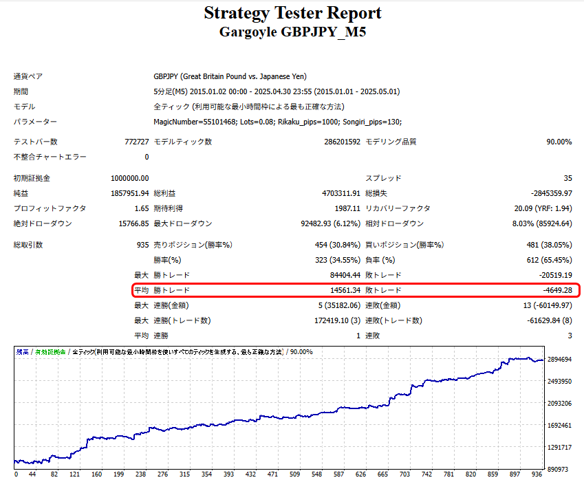 ※バックテストは固定スプレッド3.0pipsで行っております。それ以上のスプレッドでは著しく成績が悪くなる恐れがあります。