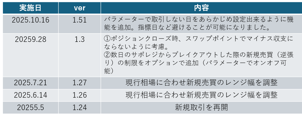 Increasing the lot size forcibly due to a high winning rate can, in rare instances, depending on the EA, lead to substantial Pips loss when a loss occurs. It is crucial to verify the SL Pips and the number of positions held before operating with an appropriate lot.